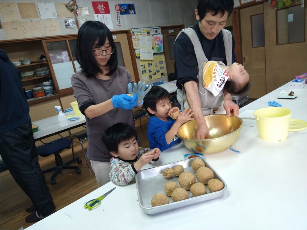 ほうれん草や小松菜の収穫体験や味噌作り。