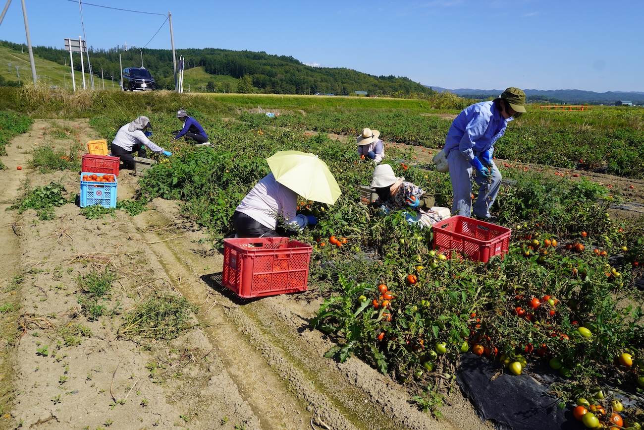 沼田町では、9月初旬から中旬にかけて加工用トマトの収穫がピークを迎えます。その収穫に人手が追い付かず、収穫の適期を逃し圃場で腐敗させてしまう場合があります。