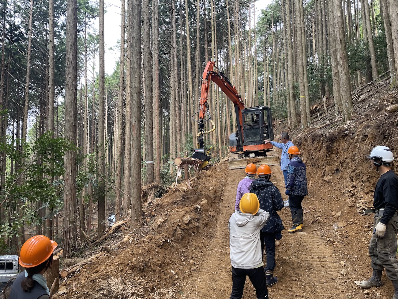 | 研修内容 | ・高性能林業機械の操作 ・チェーンソーによる伐倒・造材 ・作業道開設における木組み作業 |