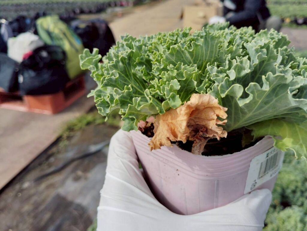 今回の作業は、出荷前の花の手入れで、取材時はハボタンの手入れ作業を手伝わせていただきました。