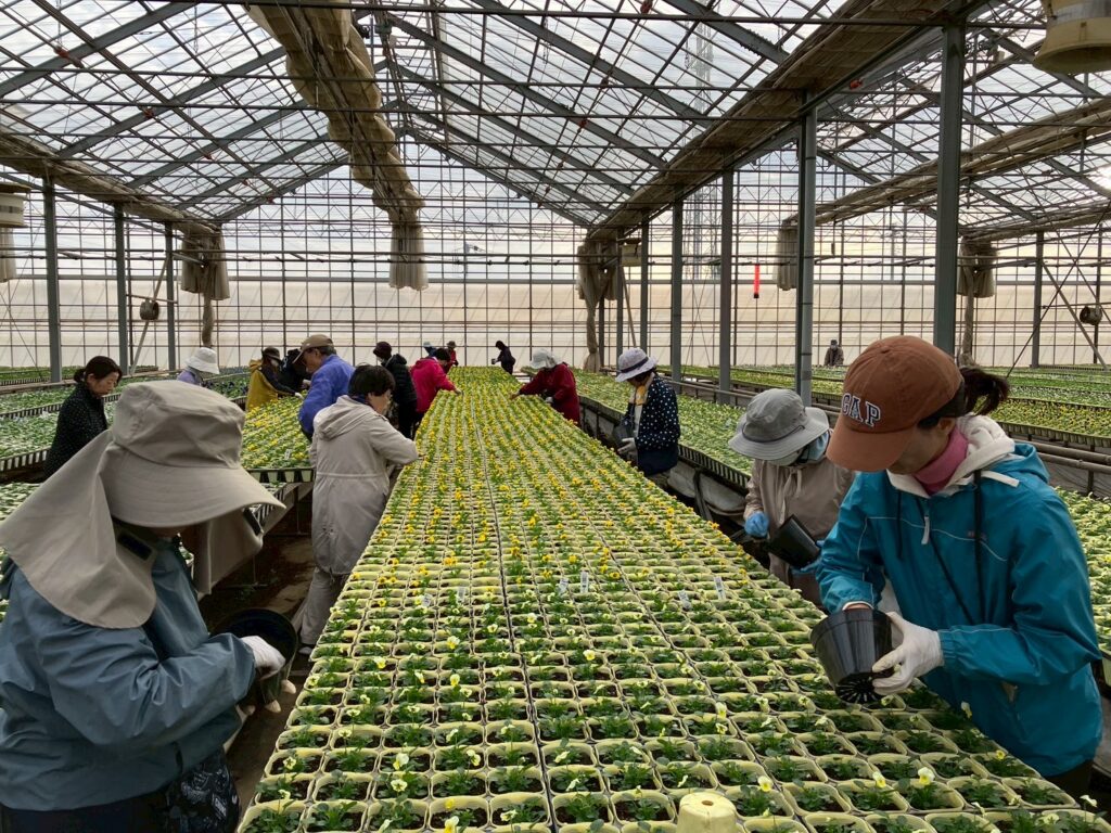 今回、初企画で、パンジー、ビオラの花摘み、ハボタン手入れ作業の企画を行いましたので、同行させていただきました。